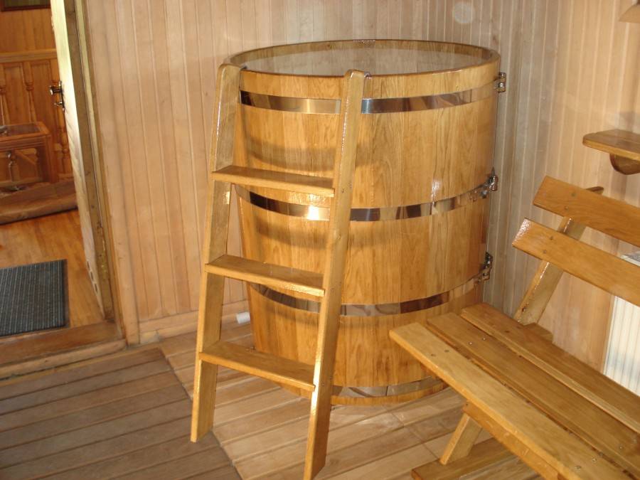 Если просто установить бочку с водой, пользоваться ей будет неудобно. Необходимо предусмотреть наличие лавочек, ступеней, систему подвода и слива воды, месторасположение отопительных и других элементов.