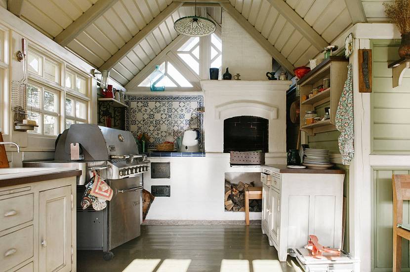 Красивая и практичная летняя кухня загородного домикаИсточник happymodern.ru