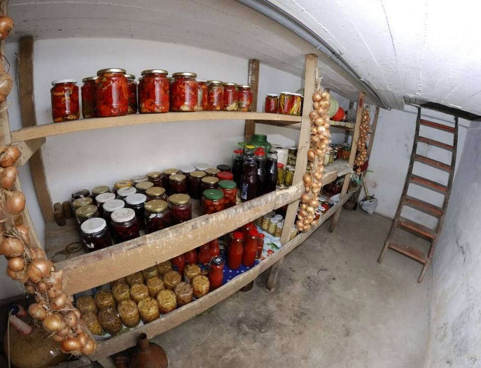 Чтобы продлить срок хранения продуктов в погребе, на стены наносится побелка или они обшиваются чистой доской. Для побелки используется гашеная известь и медный купорос, способные защитить поверхность стен от появления плесени и грибка. Закрепляются навесные полки и устанавливаются стеллажи. Высота между полками должна позволять свободно ставить на них банки, бутылки и небольшие коробки. Бочки и мешки с картошкой целесообразно разместить где-нибудь в углу погреба, подальше от входа. Дверь в помещение обшивается с двух сторон разным материалом: снаружи закрепляется металлический лист, изнутри – дерево.