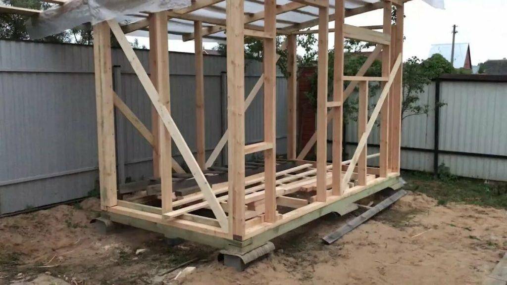 Сначала сооружают, согласно плану, каркас, а потом обшивают досками. С наружной стороны зазоры обрабатывают монтажной пеной. Внутри хорошо применять паклю.