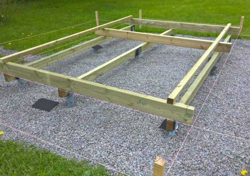 Сама конструкция располагается на бетонных блоках или столбах, что позволяет, при необходимости, быстро снять и переместить ее в другое место, либо полностью разобрать.