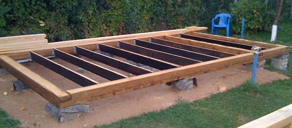 В первую очередь необходимо тщательно подготовить участок и очистить его от мусора и насаждений. Затем для защиты нижней части постройки от влажности сооружаются «кирпичные стульчики», на которые обязательно укладывается слой гидроизоляционного материала и сверху делается накрытие брусом.