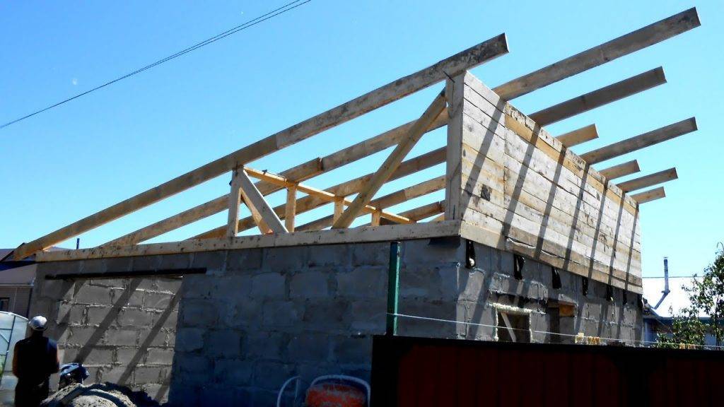 Основой является деревянная опорная конструкция, состоящая из горизонтальных, вертикальных балок и наклонных стропил. Поперечное сечение односкатной крыши выглядит в виде прямоугольного треугольника.