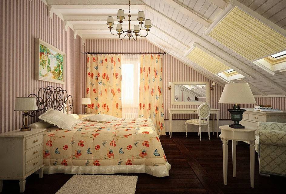 Помещение под ломаной мансардной крышей будет гораздо просторнее и с достаточно высоким потолком. Такой чердак можно спокойно разделить на две раздельные комнаты.
