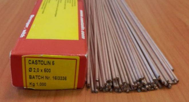 Castolin 192FBK — трубчатый припой, содержащий в сердечнике флюс. Выпускается в виде прутков, 100 г которых стоит 100-150 руб. Хорошо паяет мелкие отверстия и трещинки.