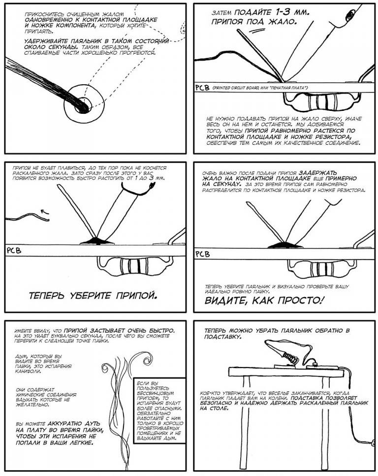 Технологическая карта или схема «правильной» пайки посредством паяльника предполагает следующий порядок проведения операций.