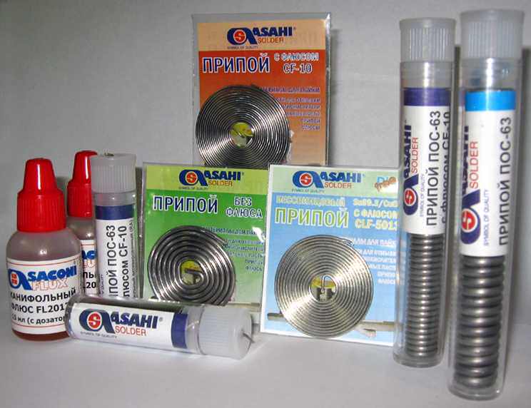Желательно обращать внимание на отсутствие в припое свинца, о чем должна сообщать специальная надпись на катушке. Важным для пайки компонентом является и флюс, который смачивает основной металл (в данном случае медь) перед пайкой, проникая во все капилляры