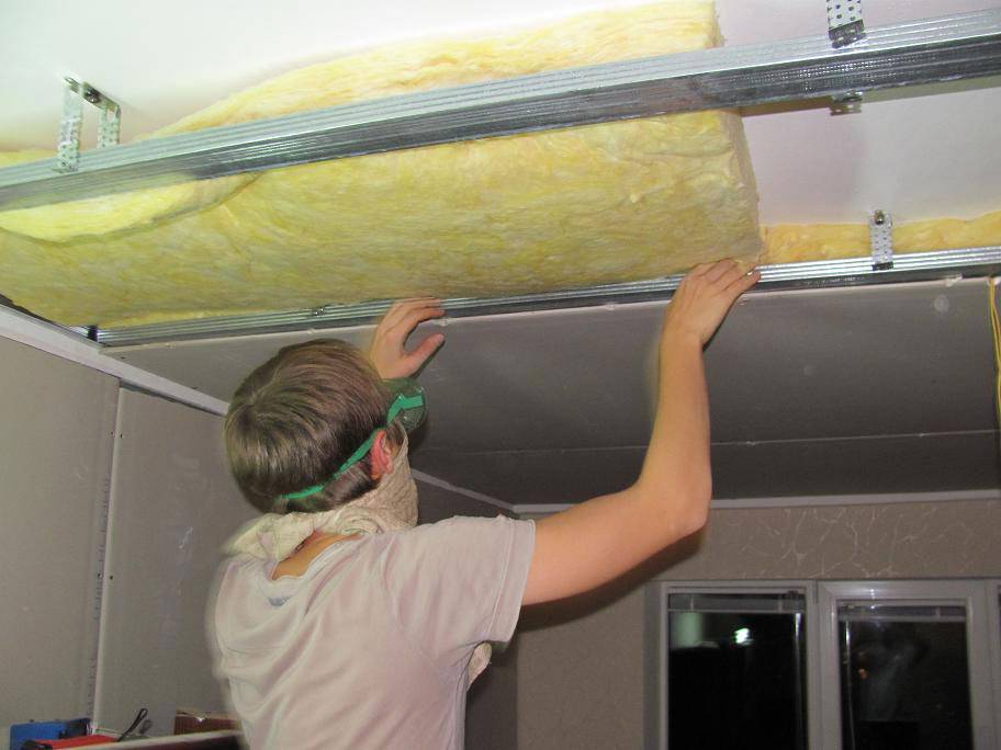 Следует отметить, что работать с утеплителем необходимо максимально осторожно, потому что материал очень «капризно» относится к любого рода сжиманиям и сдавливаниям. Когда минеральная вата установлена, то потолок можно скрыть любым доступным декором, например, гипсокартоном