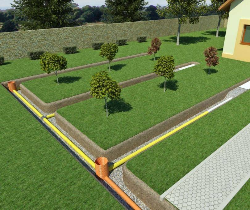 - Если территория загородного участка находится в низине, стоит проложить дренажные трубы.