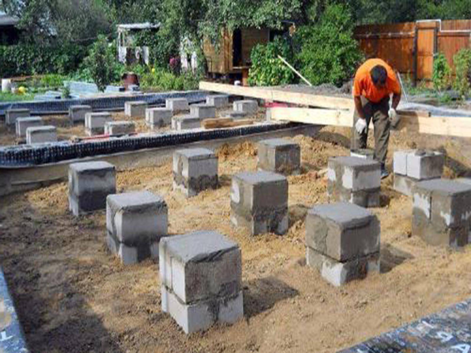 - столбчатые опоры могут изготавливаться из бетона (заливным способом), камня, кирпича, бетонных блоков. Их применение предпочтительно для закладки под открытые террасы из легких конструкций. Следует учитывать, что на особо пучинистых грунтах столбы могут вести себя непредсказуемо, вплоть до полной потери устойчивости (опрокидывания);