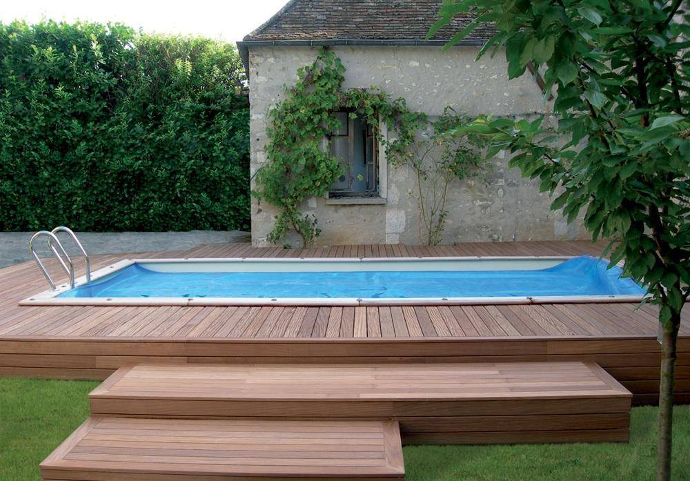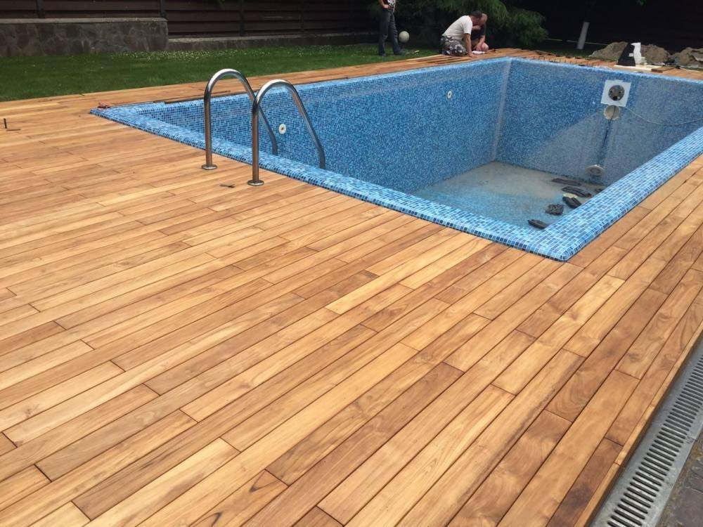 Возможен также вариант с устройством настила ниже бортика бассейна, если этот бортик имеет надлежащее оформление.