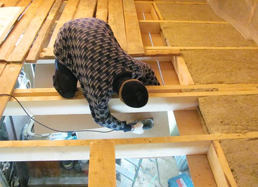 - Поверх утеплителя настилаются доски и проводится стяжка верхнего чернового пола.