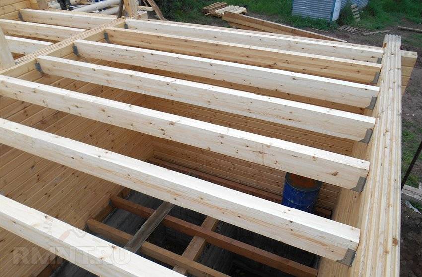 Первоначально производят все необходимые расчеты. Когда размеры, сечение и шаг укладки брусьев известен, можно приступать к монтажным работам. Здесь следует сказать, что огромное значение имеет влажность материала.