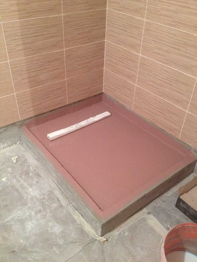 При изготовлении слива с поддоном в многоквартирном доме следует подумать о надежной гидроизоляции чернового пола в месте, где намечается строительство душевой кабины.