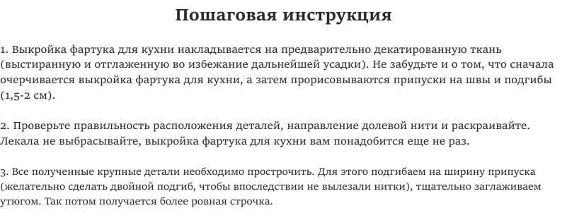 Чтобы упростить вам задачу, приведем пошаговую инструкцию по шитью фартука: