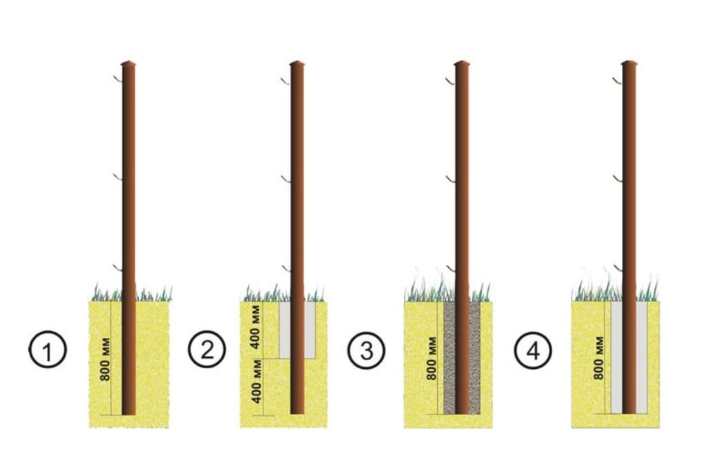 Отметим, что самым надёжным вариантом установки опорных стоек является забутовка и полное бетонирование. Два остальных способа лучше использовать, если, планируется установка невысокого забора.