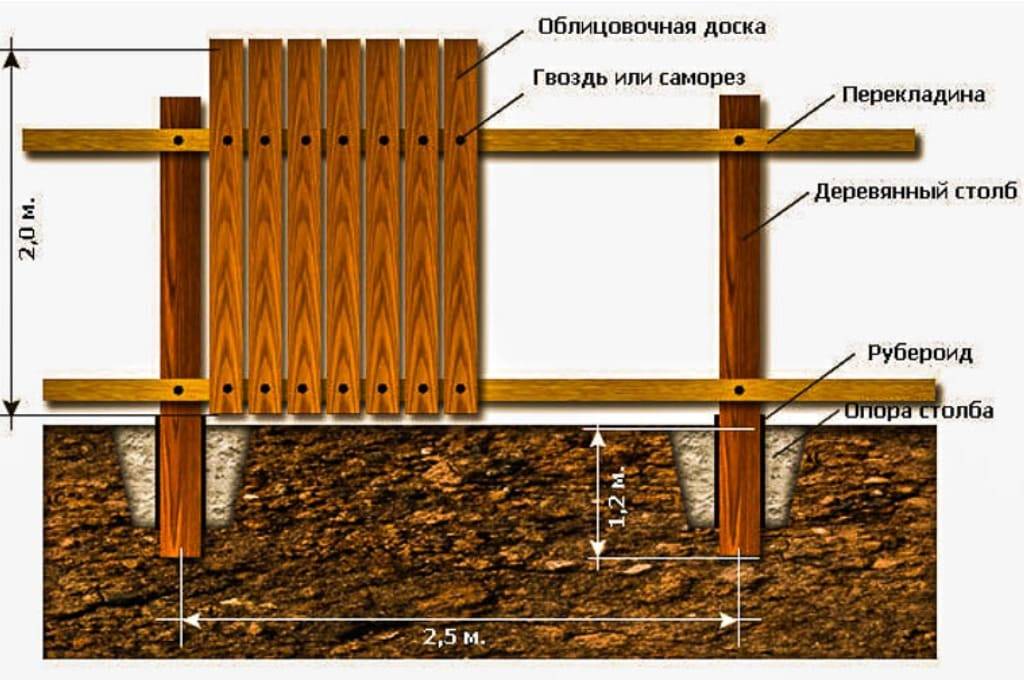 Разновидности деревянного забораСхема забора