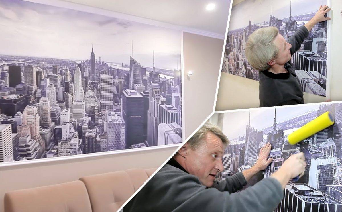 Когда наклеете рисунок, убирайте остатки клея. Поверхность разглаживаете валиком, и не забудьте оклеиваемое помещение оградить от сквозняка — иначе обои отпадут.