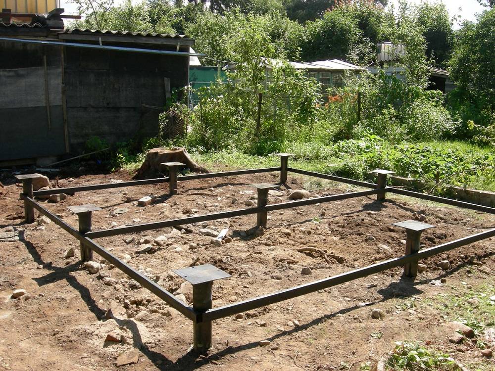 Предназначен для возведения легких сооружений. Обычно на его базе строят небольшие дачные домики, сараи, бани. Опорные столбы при этом размещаются по углам постройки и в местах с наибольшей нагрузкой. Для их формирования подходит бетон или бетонные блоки, а также бут и металлическая труба. Нежелательно монтировать столбчатую базу на рыхлых почвах, насыщенных влагой.