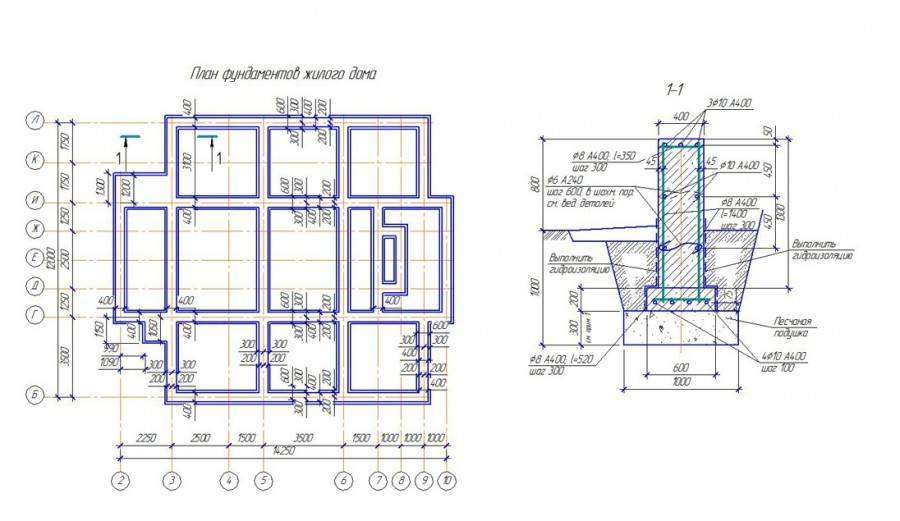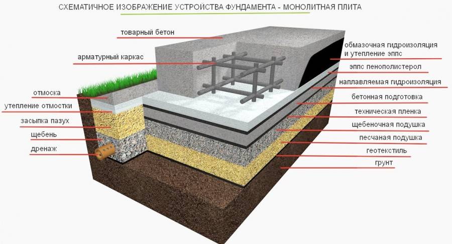Монолит закладывают при строительстве здания из тяжелых материалов, с цокольным или подвальным этажом.