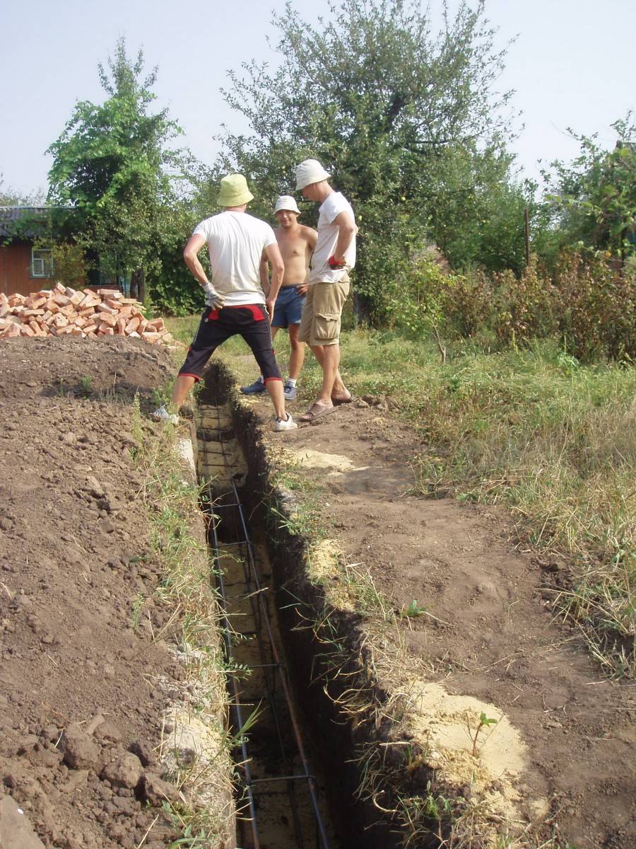 На следующем этапе необходимо вырыть ров. В случае проведения работ на пучинистых грунтах, ров нужно сделать в форме трапеции перевернутой.