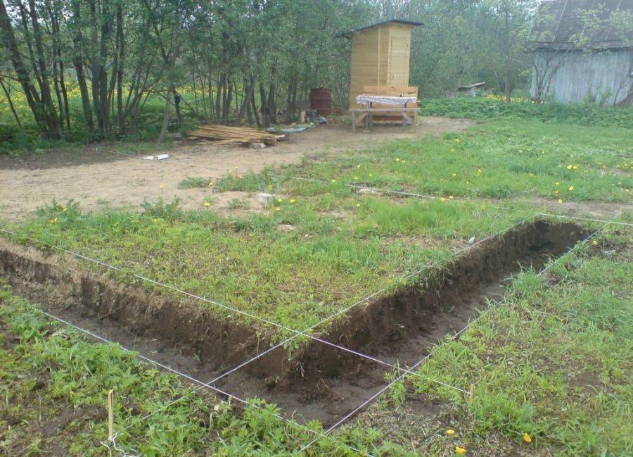 Перед началом строительства рекомендуется нарисовать план бани и определить, под какими стенами прокладывать фундамент. Участок очищают от растительности и выравнивают. Для этого можно воспользоваться рейками и уровнем. После этого по плану роют траншею.