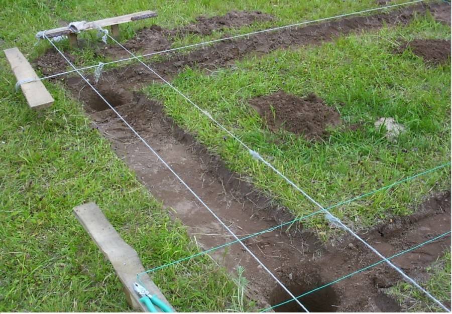 - Согласно отмеченным местам выкопать ямы. Они должны располагаться по разметке с шагом 2 м.