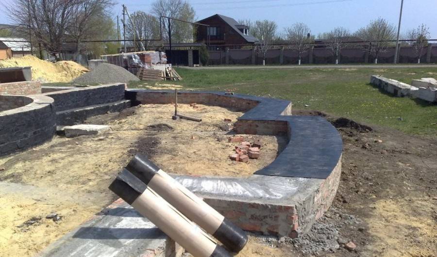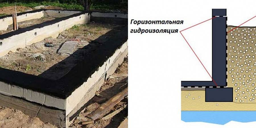 В случае если ростверк и опоры являются монолитными, то защита укладывается в местах соприкосновения стен и основания. Если обустроен цоколь, то его гидроизолируют снаружи и изнутри от грунтовых вод.