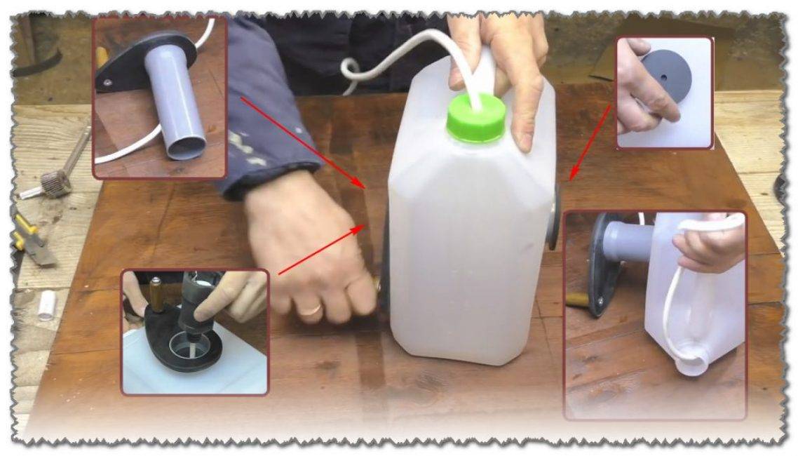Переноска будет представлять собой корпус из канистры и шпули для наматывания провода.