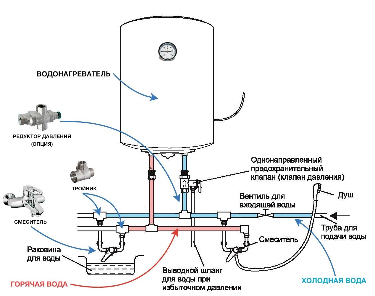 Схема подключения проточного водонагревателя