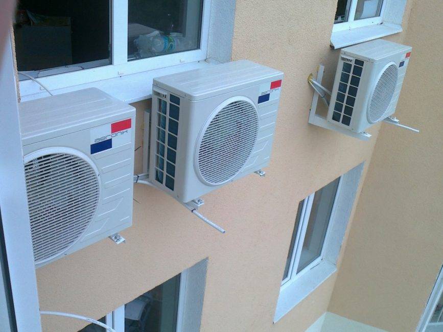 - установка наружной части. Не на все здания можно вешать наружный блок. Если некуда его прикрепить, то обычно ставят на балкон