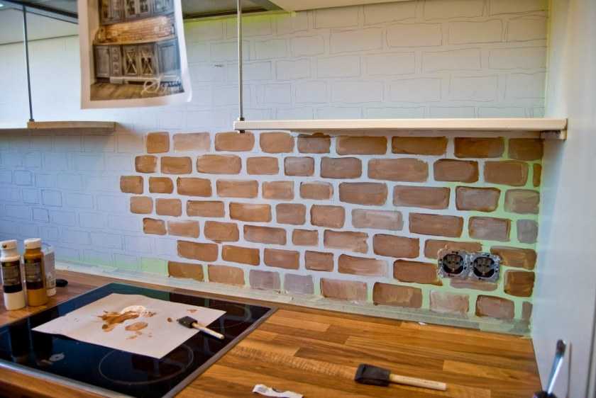- укладываем кухонный фартук, предварительно нарисовав его контуры прямо на стене;