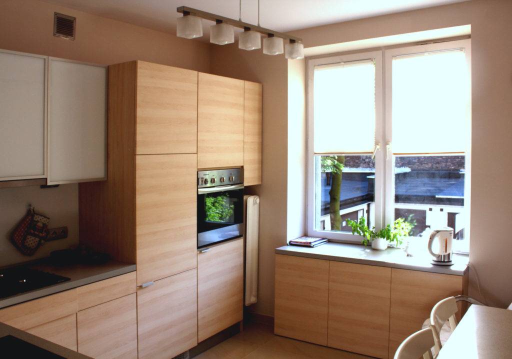 Это сравнительно новый, но уже ставший популярным среди владельцев маленькой кухни прием. Площадь подоконника расширяется и становится продолжением столешницы.
