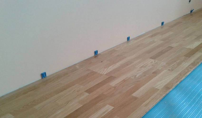 - по периметру устанавливаются клинья, чтобы отделить половое покрытие от стен