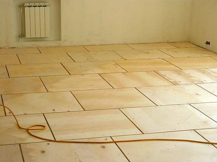 При выравнивании деревянного пола, все сильно выступающие фрагменты стесывают рубанком или при помощи циклевки, щели заделывают шпаклевкой. На подготовленный старый деревянный пол укладывают листы фанеры (ее используют чаще, хотя можно класть любой листовой материал с ровной поверхностью). Их крепят саморезами к полу: по периметру через 15 см, в середине в шахматном порядке.