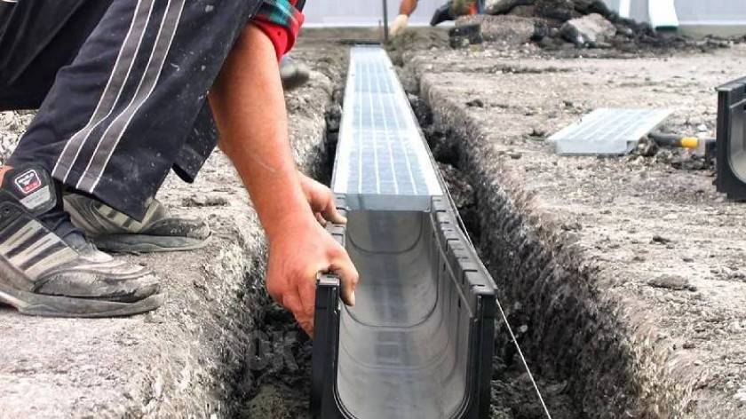 - укладка специализированных бетонных каналов, у каких поверхность внутри сделана под уклоном.