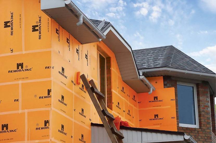 Также практически уникальная теплопроводность (ниже отметки в 0,028-0,03 Вт/м) позволяет использовать для работы минимальное количество материала. То есть для утепления пеноплексом дома своими руками хватит и плит толщиной до 5-6 см.