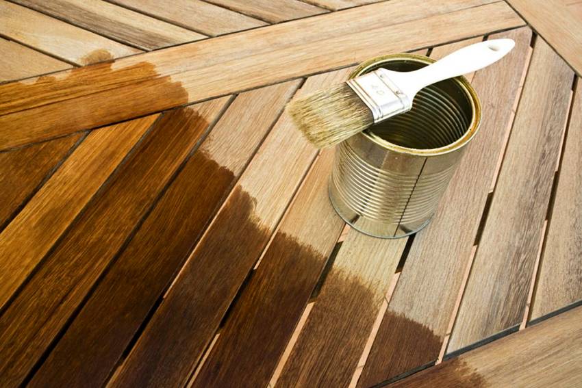 Чтобы лучше защитить деревянное покрытие и продлить срок его службы, его рекомендуется обрабатывать морилкой. Такая пропитка глубоко проникает в поры древесины и вступая в химическую реакцию с дубильными веществами, находящимися в годичных кольцах, придаёт дереву свето- и водозащитную окраску.