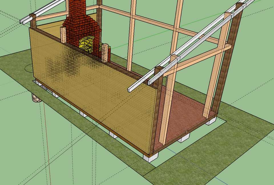 - сечение стоек, подкосов и прогонов – 10 х 5 см;