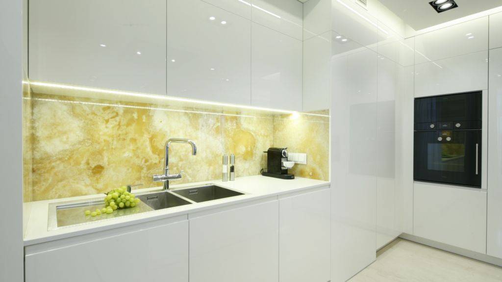 Светлое покрытие – всегда хороший вариант для отделки поверхностей кухни. Во-первых, на такой поверхности меньше всего заметны пятна и брызги воды, а во-вторых, светлые цвета позволяют сделать даже самое маленькое помещение визуально более просторным и уютным.