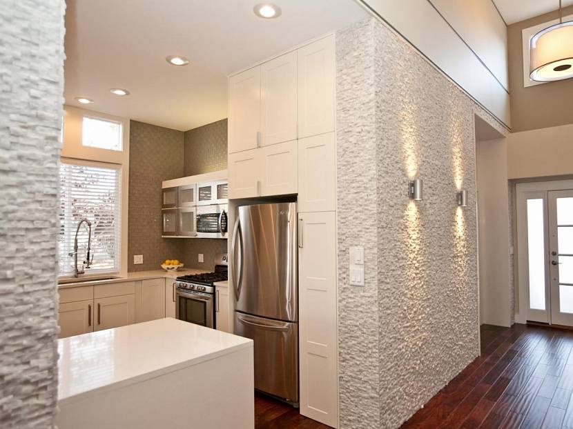 Отделка стен в прихожей декоративной штукатуркой требует предварительной подготовки основания. Это касается гостиной, кухни и других помещений