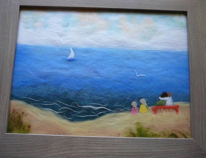 Картину можно свалять из специальной шерсти. Валяные картины сейчас пользуются большим спросом из-за того, что исполнение их достаточно простое, а результат эффектный.