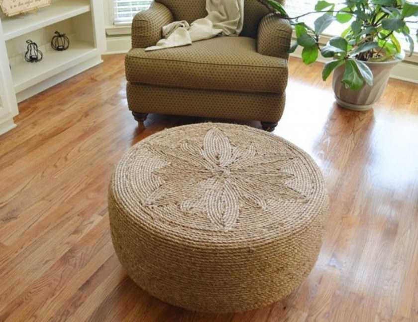 С минимальными затратами можно изготовить универсальный пуфик своими руками