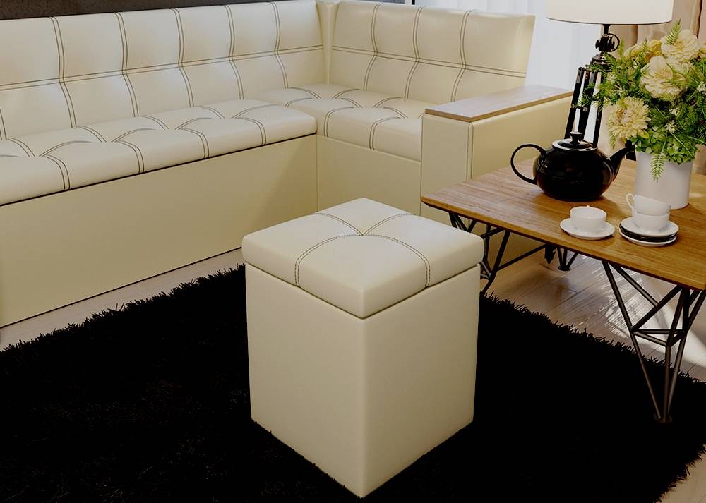 Если немного потрудиться, можно сделать более основательную конструкцию – квадратный пуфик со съёмной крышкой на колёсиках. Это ещё и дополнительное место хранения для бытовых мелочей, игрушек, а также в нём можно хранить и тапочки для гостей. Для работы понадобятся следующие материалы: