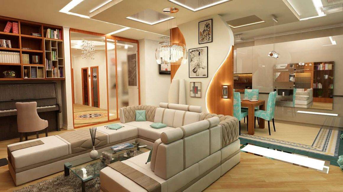При планировании ремонта в большой комнате с большой функциональной загруженностью вам необходимо будет продумать стиль и цветовую палитру интерьера.
