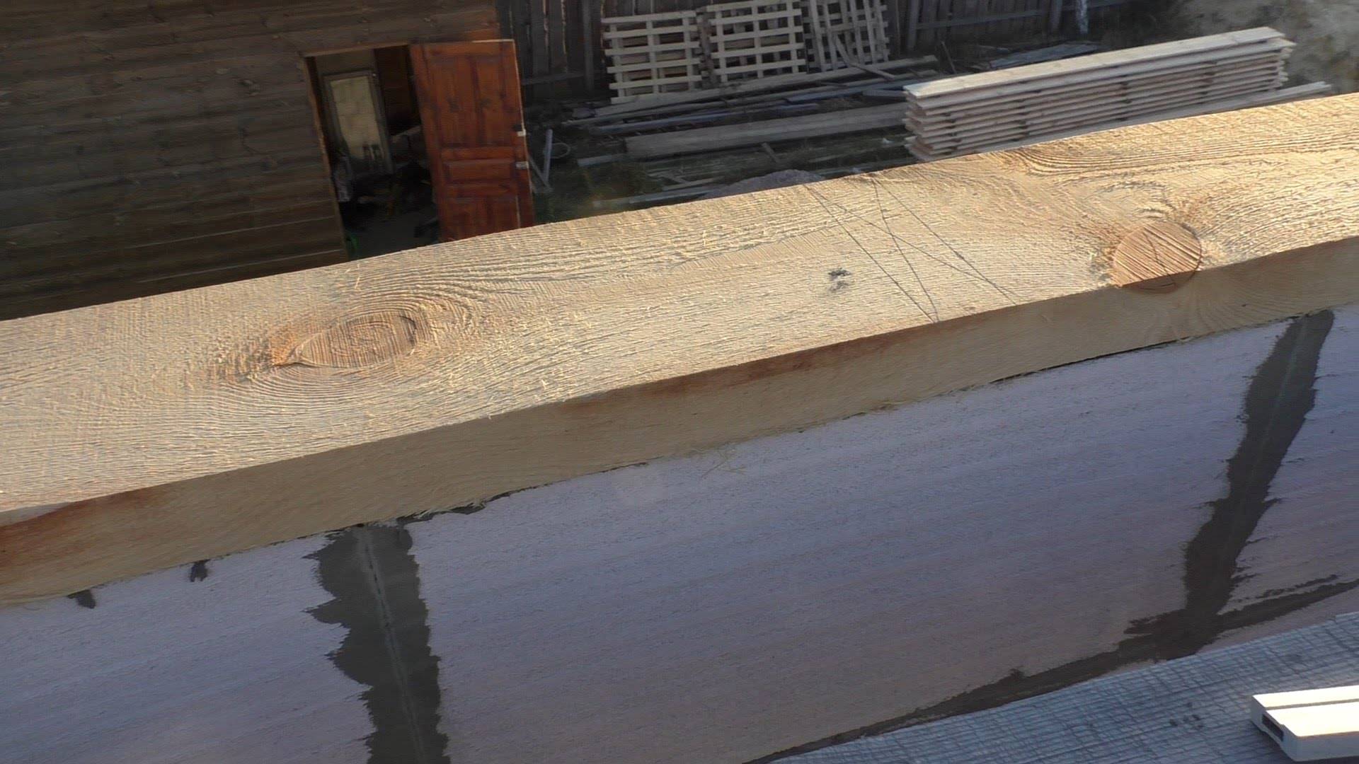 Функции мауэрлата выполняет цельный брус (в жилых домах – с сечением не менее 150 мм), по возможности квадратный, закрепляемый у наружной стороны несущих стен по всему периметру дома. В домах со стенами из пористых или малопрочных материалов под мауэрлатом дополнительно закладывается ж/б армопояс, в деревянных срубах основанием каркаса может быть верхний венец.