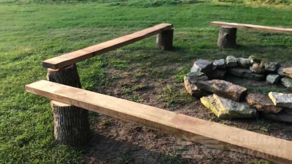 Но скамейки из древесины — не единственно возможный вариант, хотя, конечно же, с досками и брусками работать намного проще, и можно даже обойтись стандартным ручным инструментом.