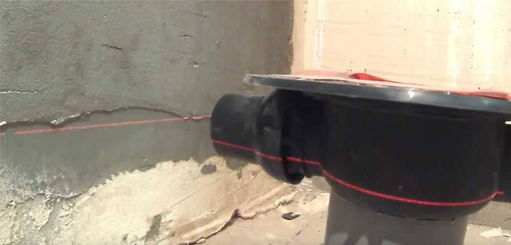 - Покрытие прорезают в месте слива, проклеивая места соединений мастикой.