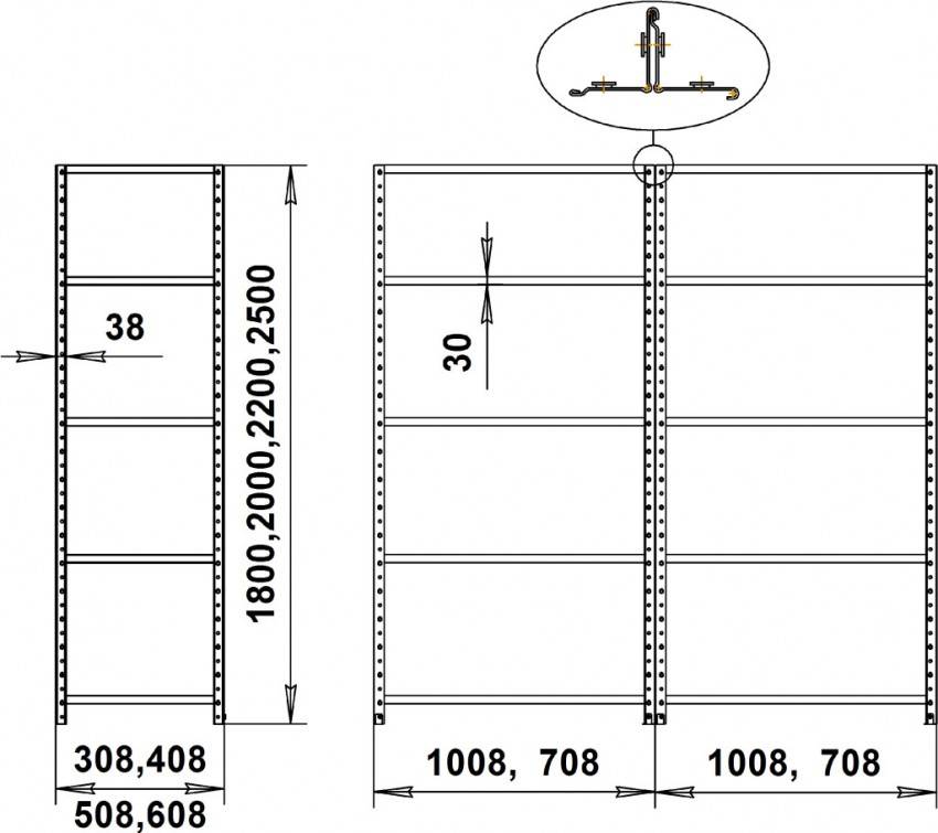 Для выполнения стеллажей используют металлический профиль из стандартных оцинкованных элементов, изготовленных из материала толщиной не менее 0,5 мм.