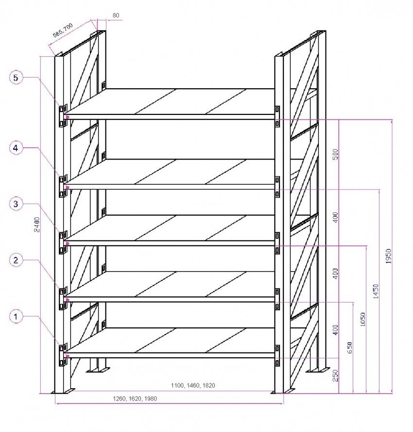 Предварительная схема стеллажа позволяет уберечь мастера от многих ошибок на этапе проектирования. Легче переделать схему, чем стеллаж (когда выяснится, что готовое изделие не подходит).